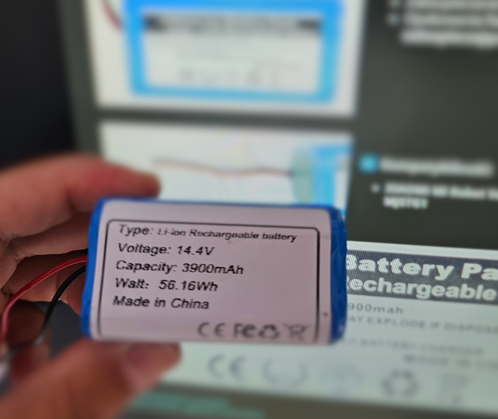 Specjaliści z zespołu Gares postanowili sprawdzić jeden z takich „superwydajnych” akumulatorów. Na popularnej w Polsce platformie marketplace zamówiliśmy akumulator do robota odkurzającego, reklamowany jako model o pojemności 3900 mAh i napięciu 14,4 V. Co istotne – produkt nie miał żadnej marki. Na obudowie znajdowała się jedynie prosta naklejka, ewidentnie wydrukowana na zwykłej drukarce biurowej.