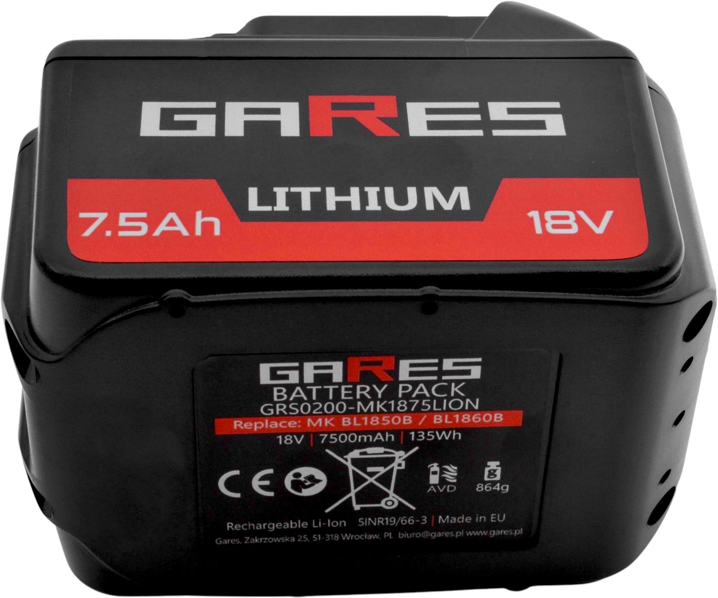 Akumulator Gares 18V 7,5Ah DMR108 DDF482RFJ DUC353Z DGA452Z do Makita BL1830 BL1840 BL1850 BL1860