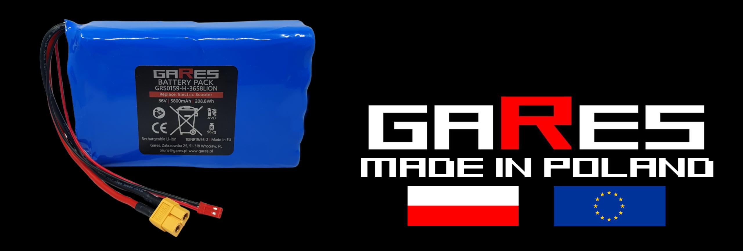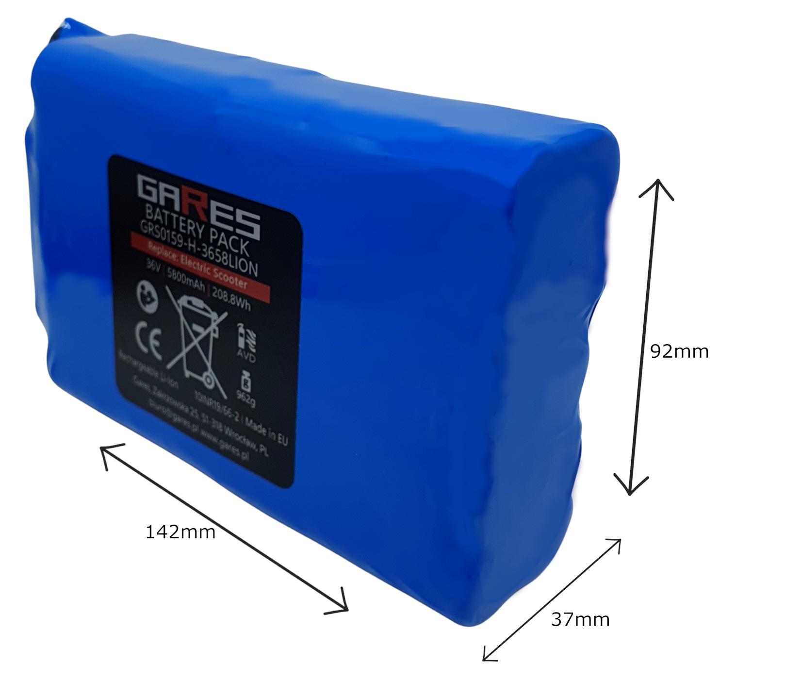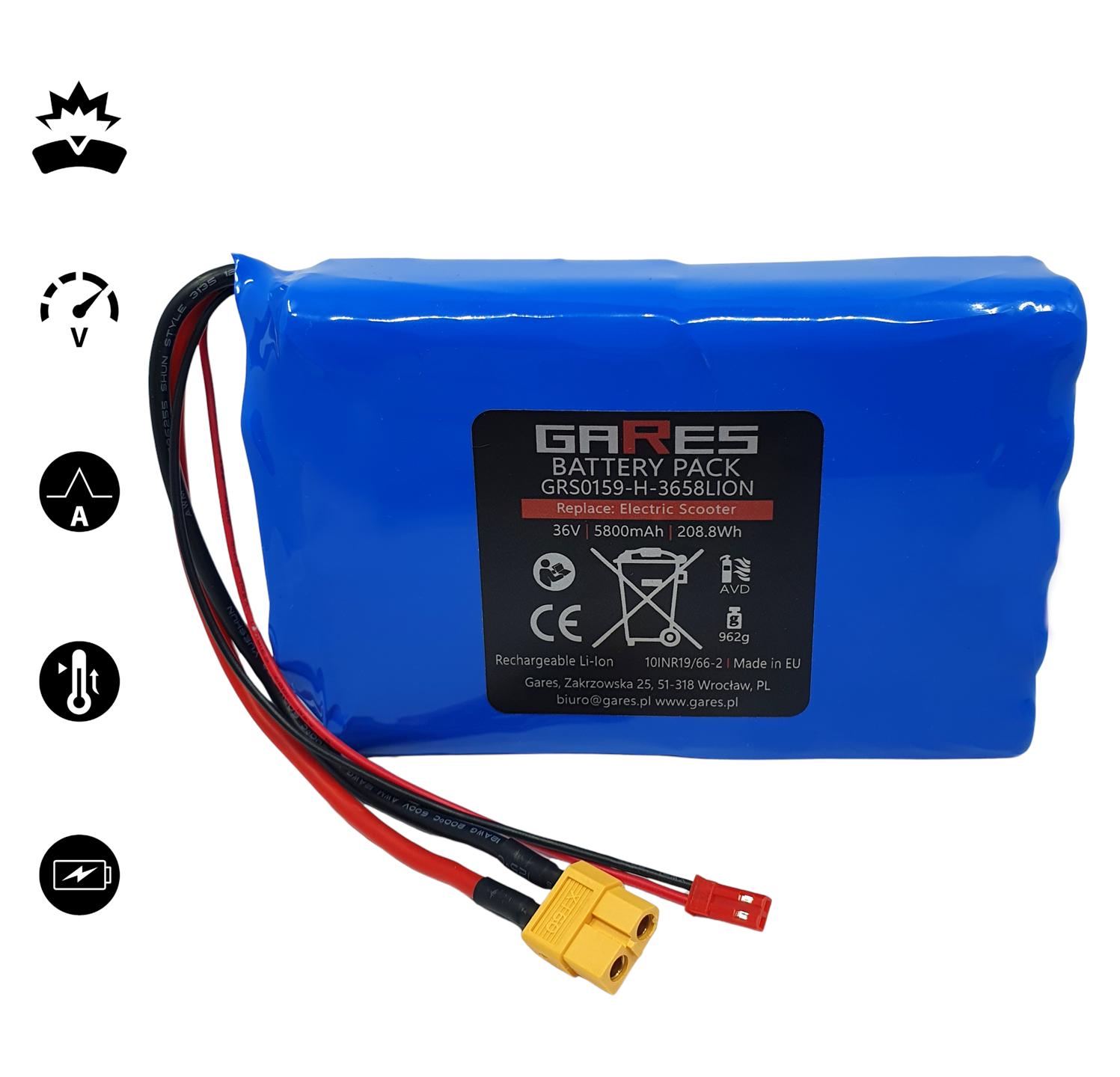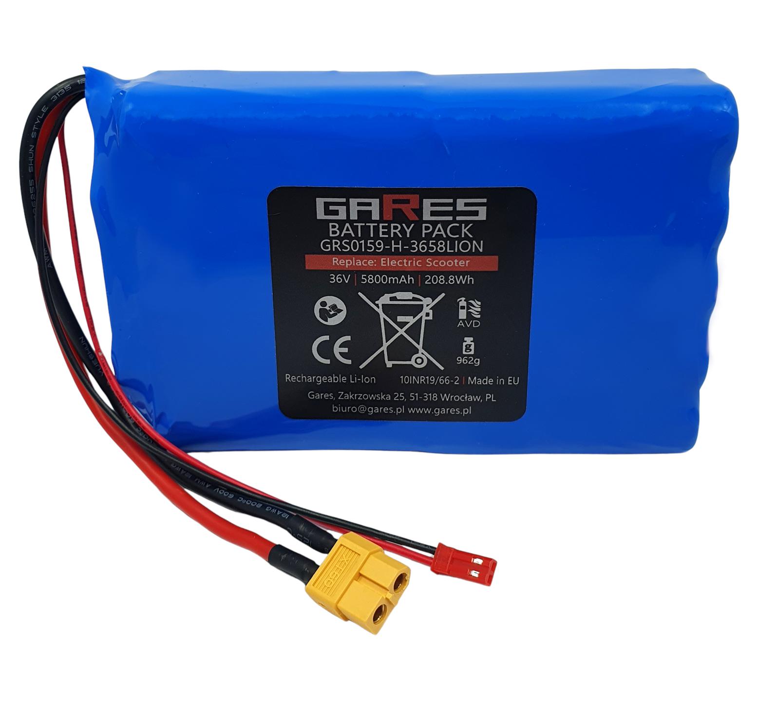 Akumulator Gares 36V 5,8Ah do deski elektrycznej, wtyki XT60 + JST