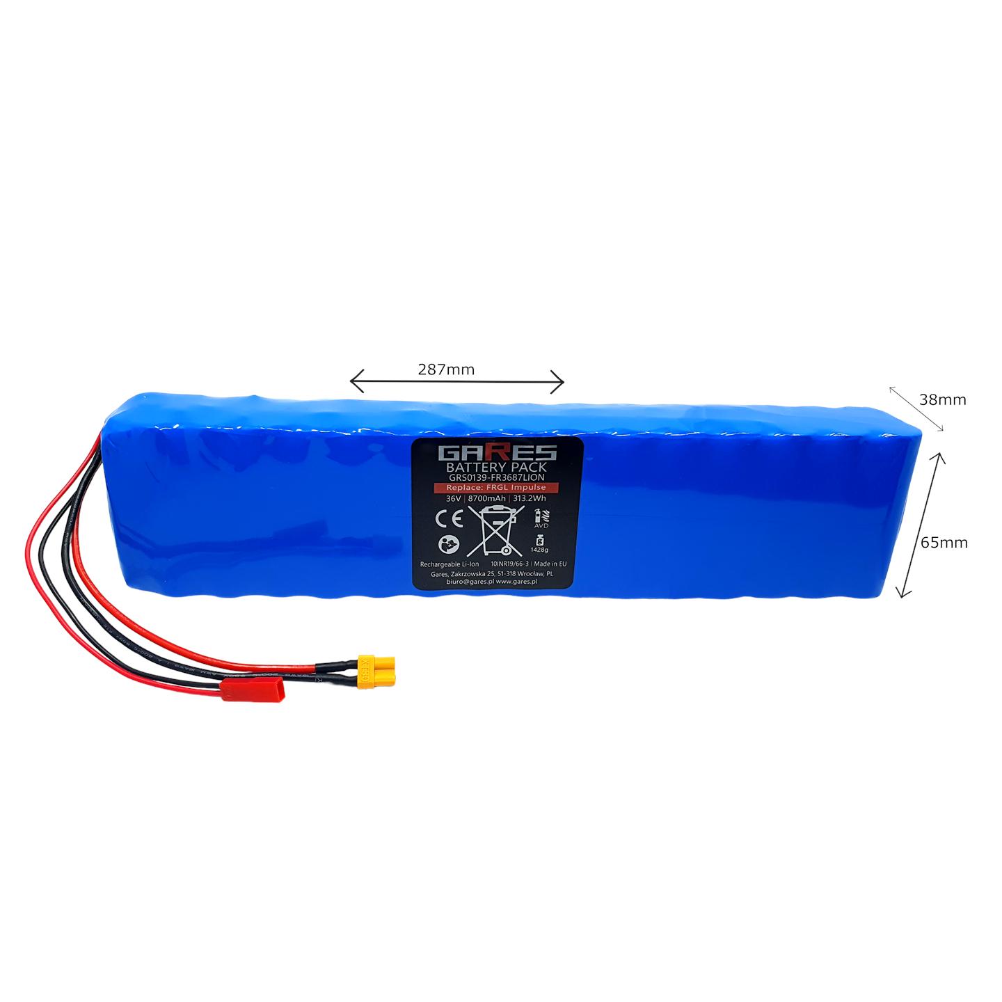 Akumulator Gares 36V 8,7Ah do Hulajnogi Frugal Impulse, wtyczki XT30, JST/SYP Gniazdo