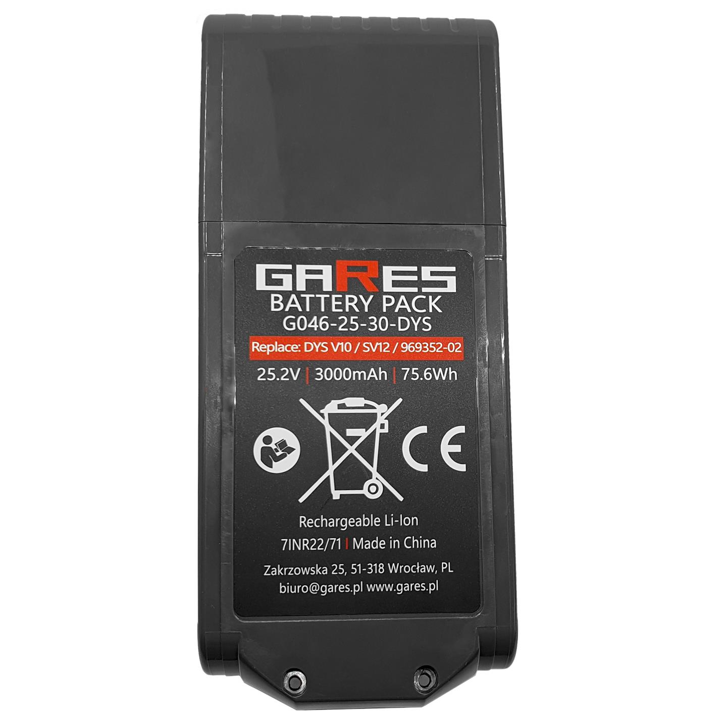 Akumulator Gares do Dyson V10 SV12 SV27 969352-02 25,2 3,0Ah