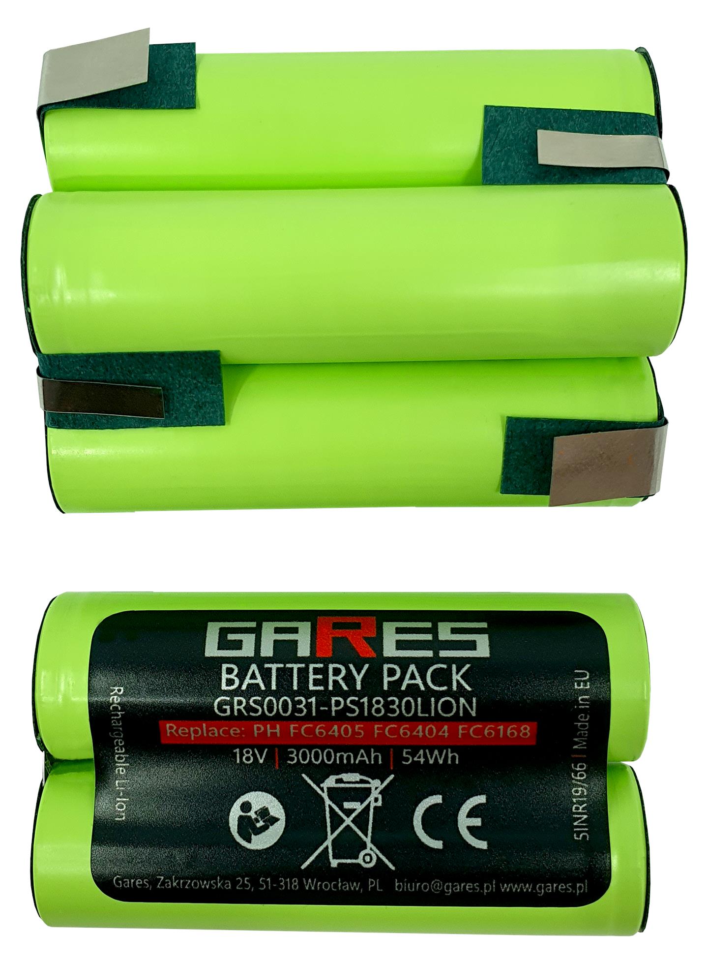 Akumulator Gares do Philips PowerPro FC6405 FC6404 FC6168 18V 3Ah