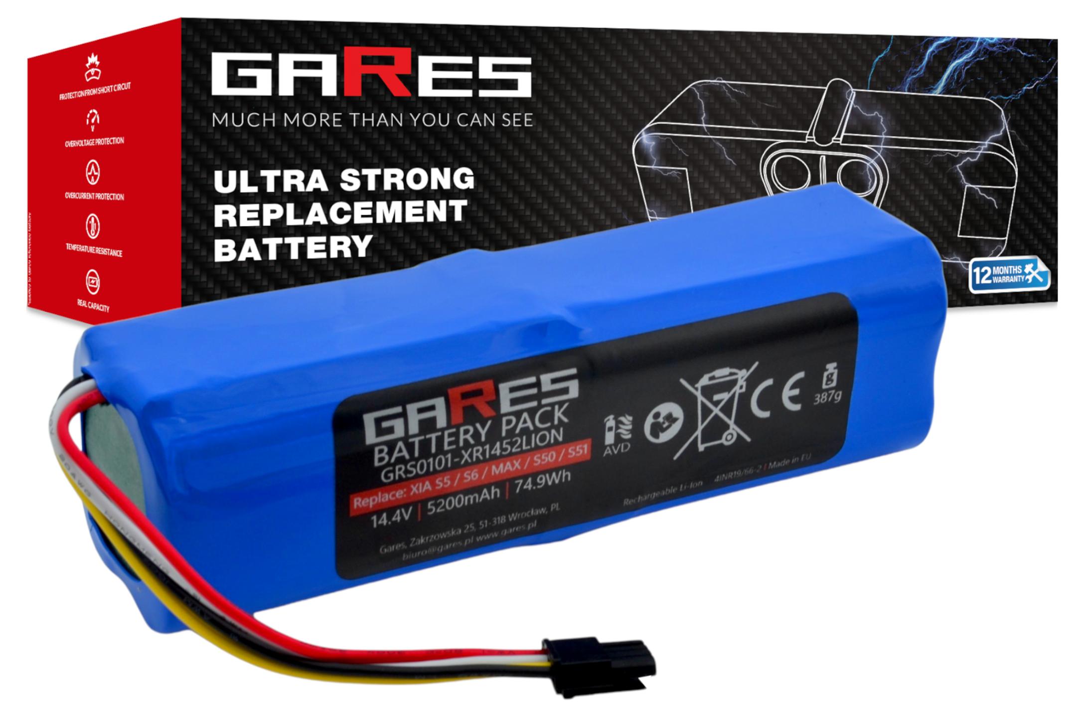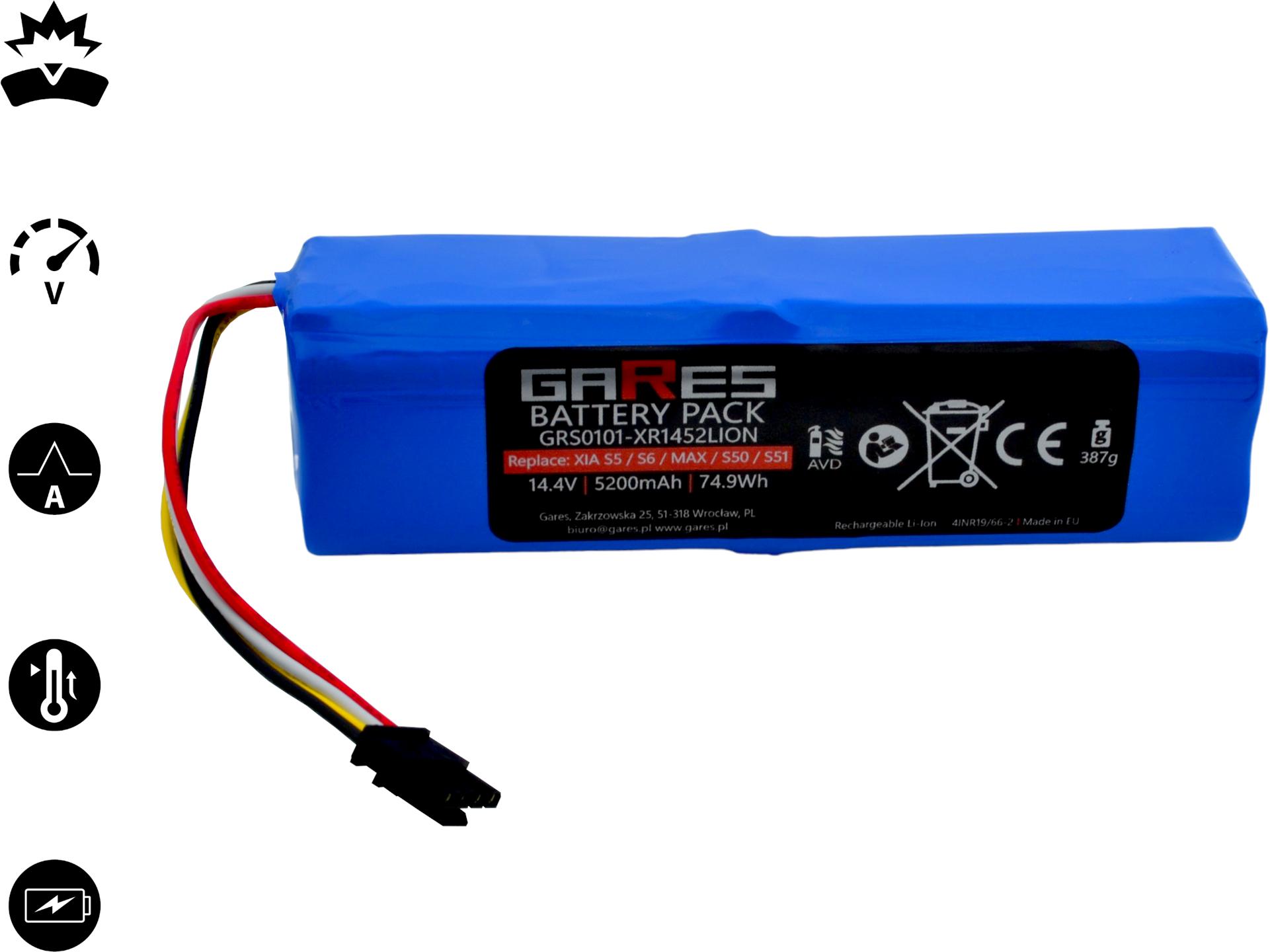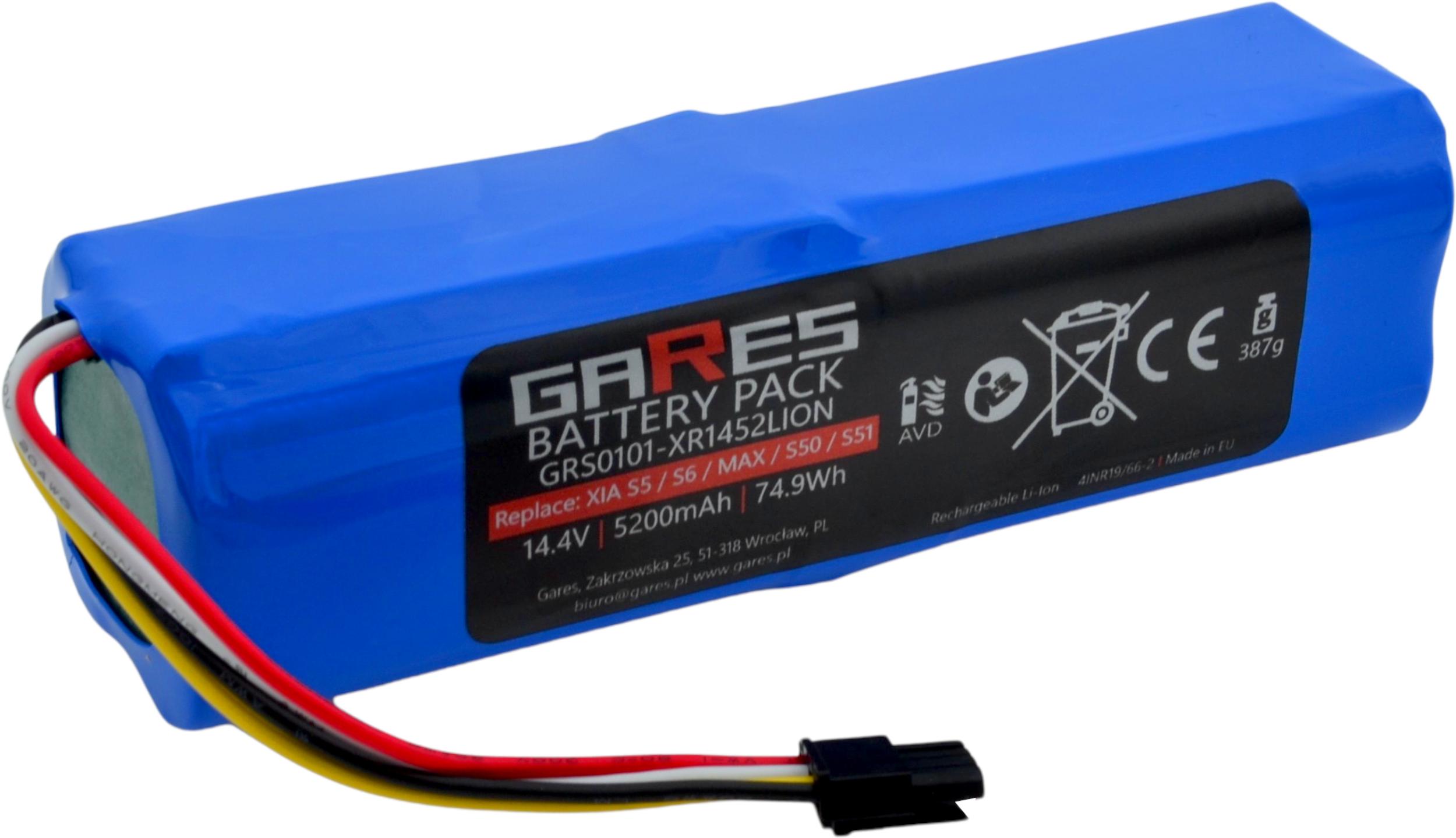 Akumulator Gares do Xiaomi Roborock S5 S5max S6 S7 S7max Q5 Q7 S50 S51 S55 S60 S61 S65 Sweep One BRR-2P4S-5200S XJT-2P4S-5200 Folia 14,4V 5,2Ah