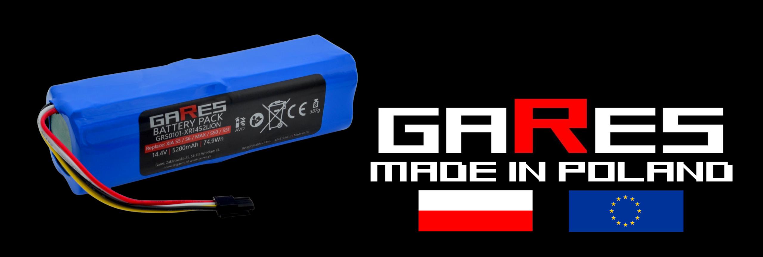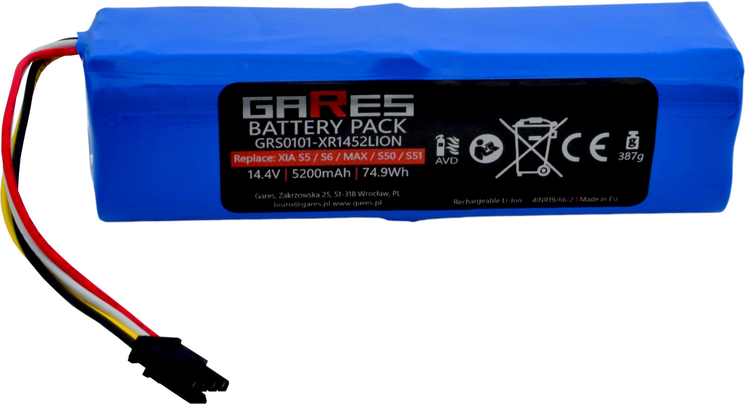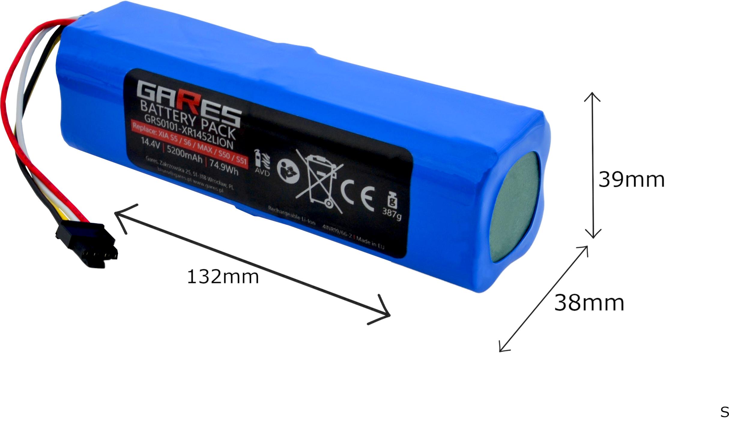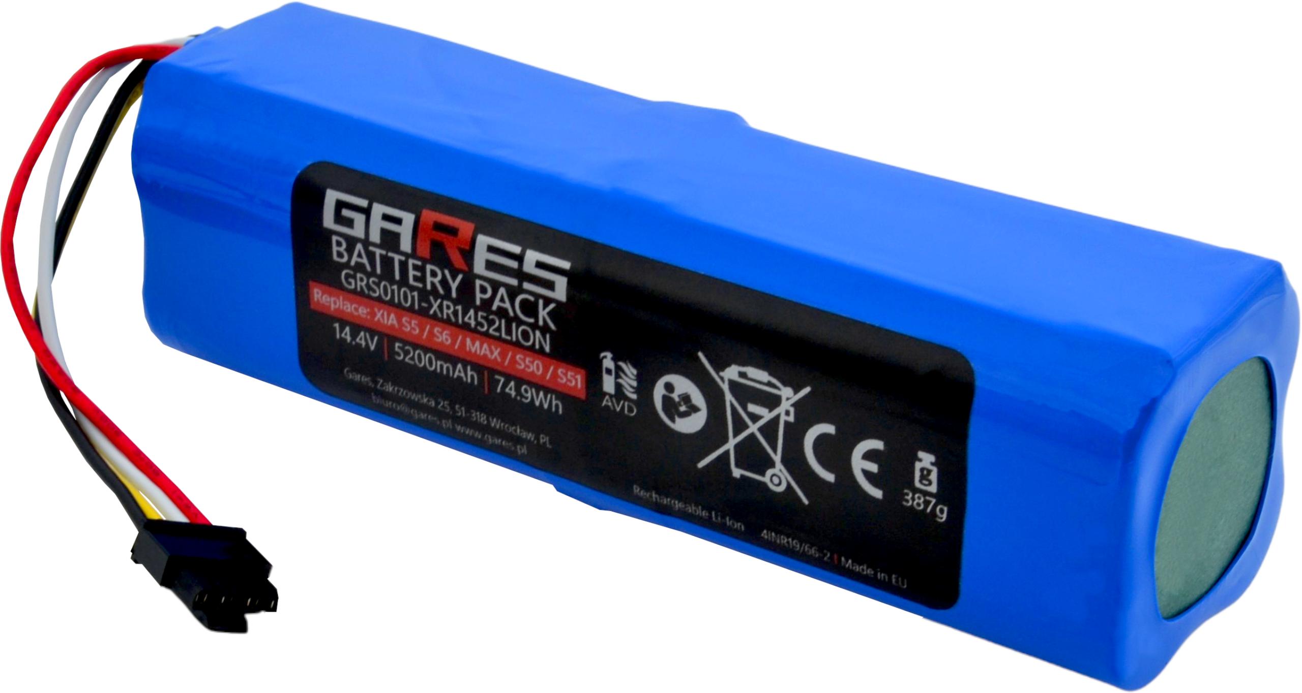 Akumulator Gares do Xiaomi Roborock S5 S5max S6 S7 S7max Q5 Q7 S50 S51 S55 S60 S61 S65 Sweep One BRR-2P4S-5200S XJT-2P4S-5200 Folia 14,4V 5,2Ah